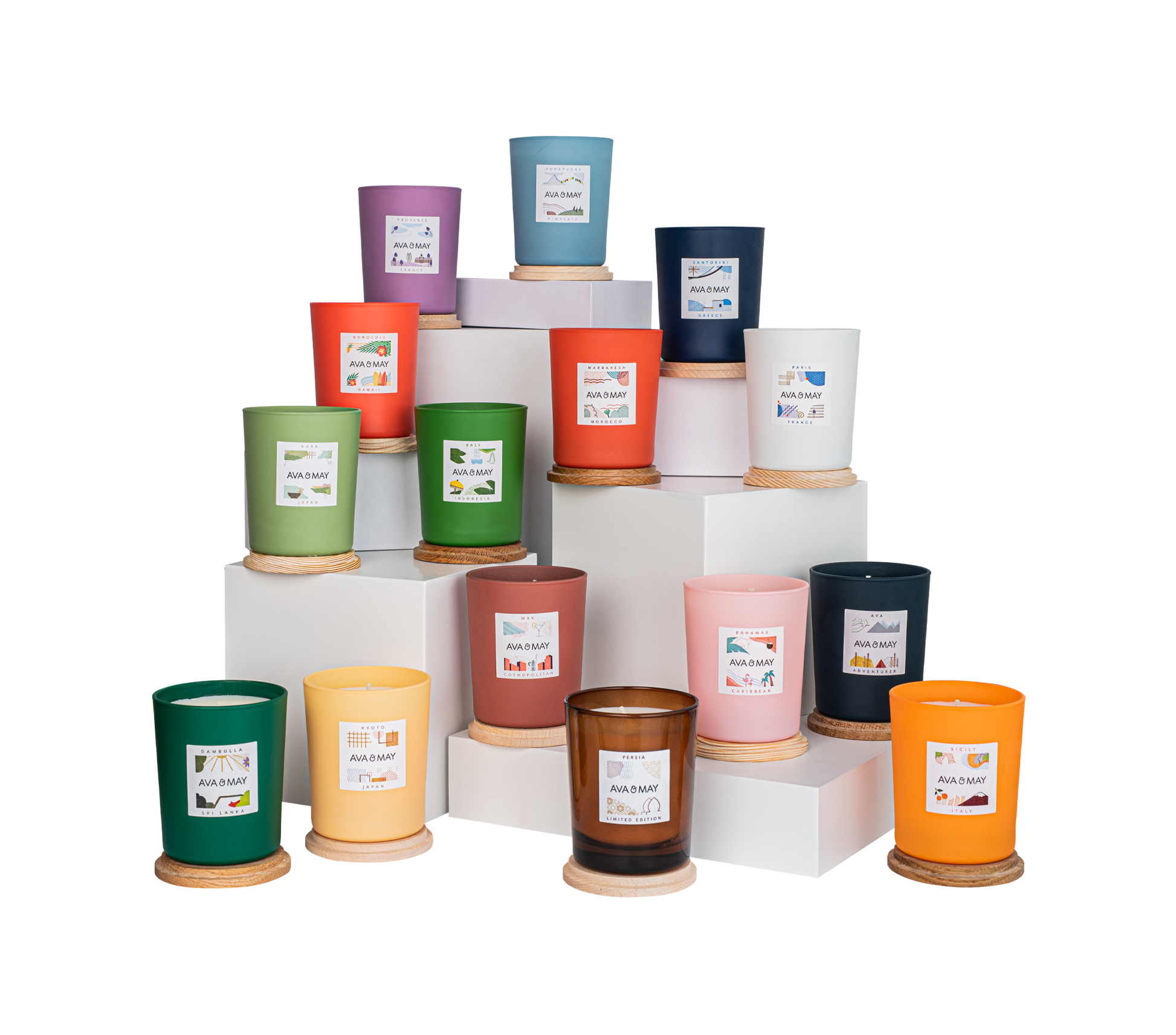 In diesem Set werden alle Standard Duftkerzen zu einer aufregenden und vielfältigen Mischung vereint. Süß, Fruchtig, Holzig, Würzig, Frisch und Blumig – hier ist für jeden etwas dabei. Lasst den Alltag hinter euch und genießt eine Sinnesreise zu den schönsten Destinationen dieser Welt.